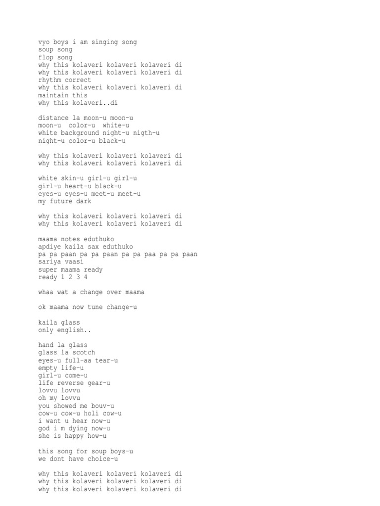 Why This Kolaveri Di Lyrics / Even the legendary amitabh bachchan liked the song and praised it on twitter!
